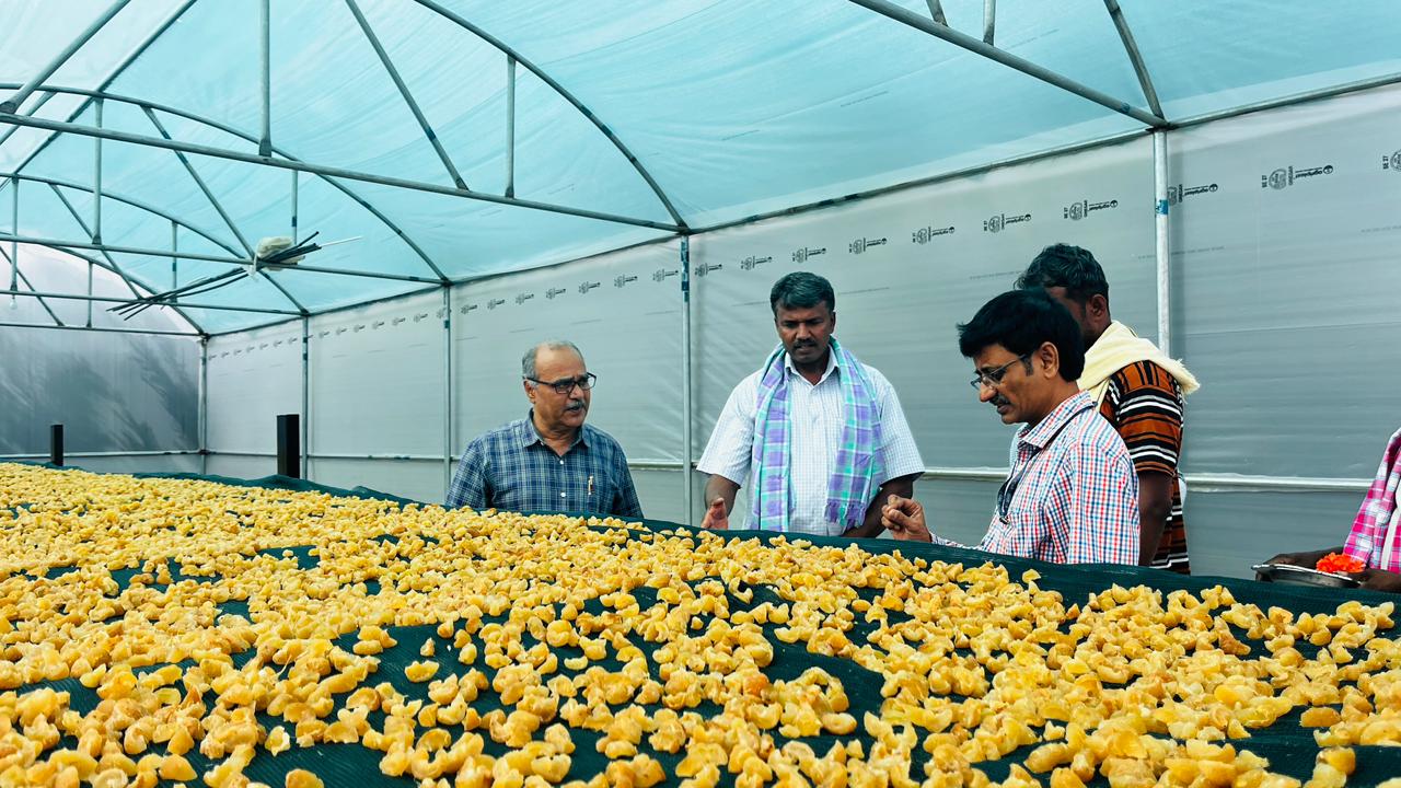 With support from NMPB RCFC (Southern Region), a farmer (Mr Mahesh N M) from Karnataka has set up a solar dryer unit for Amla value addition. Now, instead of selling raw fruits, he processes them into dried Amla, candy, and powder reducing waste and increasing income sustainably.